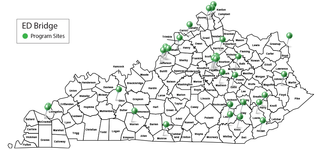 The state has ED Bridge Programs in place, making a difference in the lives of patients and their communities. However, the KYSOS team will continue to expand the ED Bridge Programs into acute care hospital EDs across the state. The KYSOS ED Bridge Program goal is to increase access to treatment and assist patients on their road to recovery, thus saving lives in Kentucky communities.